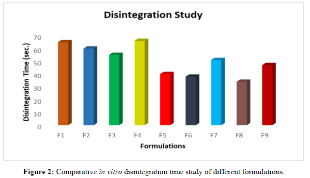 In vitro disintegration studies: In vitro disintegration studies were carried out for all nine formulation.