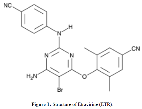 Etravirine (ETR) is a non-nucleoside reverse transcriptase inhibitor used to treat HIV-1, approved by the FDA for its efficacy against the virus [1,2]. It is chemically classified as a 4-[[6-amino-5-bromo-2[(4-cyanophenyl)-amino] pyrimidinyl] oxy]-3,5-dimethylbenzonitrile and belongs to BCS Class IV due to its low solubility and permeability. Literature survey reveals that analytical methods for ETR are limited, with only three High-Performance Liquid Chromatography (HPLC) methods available and it being listed in the USP Draft-2023 [3-5]. The brand of this molecule mainly intelence. Existing literature shows a lack of comprehensive methods for analyzing ETR and its impurities, with only one study addressing force degradation impurities and detecting seven, two of which are noted in the USP draft. There is a need for a method to identify both known and unknown impurities, particularly those causing toxicity. The aim of the study is to develop a simple and accurate RP-HPLC method for routine ETR analysis (Figure 1 and Table 1).
