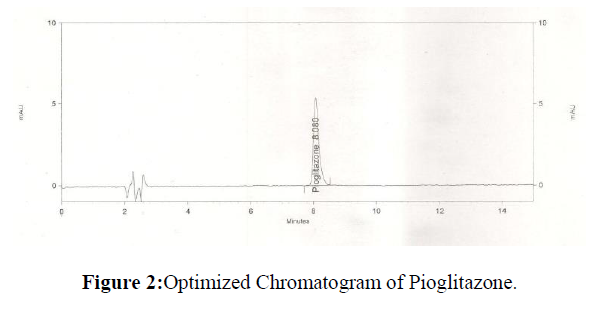 Accuracy: For accuracy of the method, pioglitazone HCl was analyzed at three different levels in triplicates and the %RSD was calculated. The %RSD was found to be less than 2%.