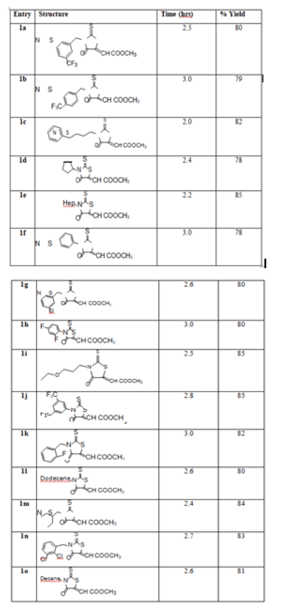 Table 3: Synthesized 3- substituted- (4-oxo-2-thioxo-thiazolidin-5-ylidene)-methyl ethanoate